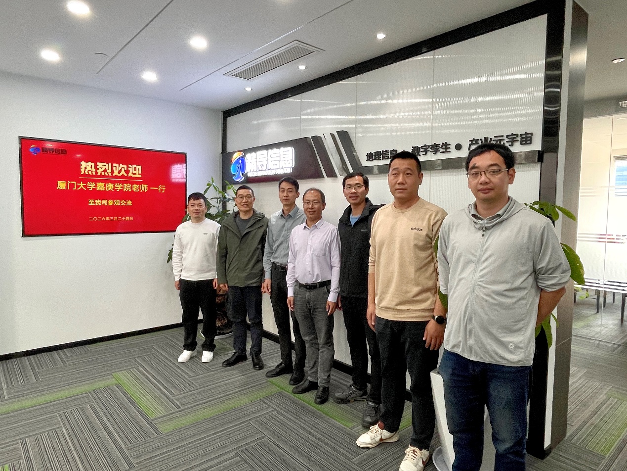 2026年3月24日下午,土木工程学院党总支书记丰正伟、工程管理教研室主任林龙镔、专任教师沈耀辉一行,前往位于厦门火炬高新区思明软件园一期的精导信息技术有限公司,开展走访调研与交流活动。公司总经理郭建业对来访教师进行了热情接待,多名技术工程师参与座谈交流。