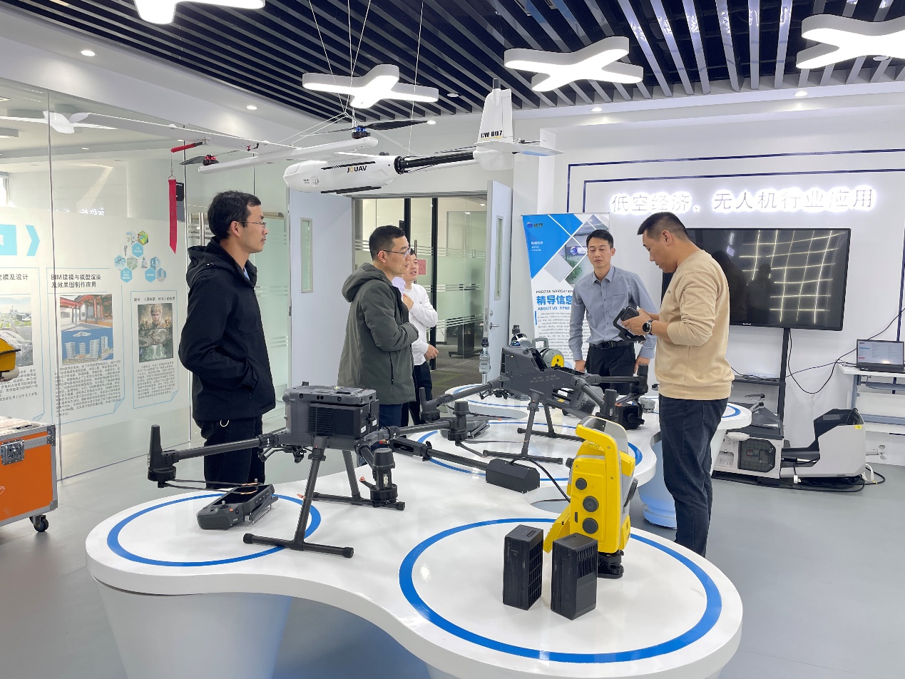 在交流过程中,郭建业总经理详细介绍了公司的发展历程与业务布局,并重点展示了近年来在测绘工程领域取得的成果。通过现场讲解与设备展示,教师们深入了解了公司在智能测绘领域的技术应用现状,包括无人机测绘系统、三维激光扫描技术、智能工业机器狗巡检系统以及智能无人船水域测绘平台等先进设备。这些技术的集成应用,充分体现了测绘行业向智能化、数字化方向发展的趋势。